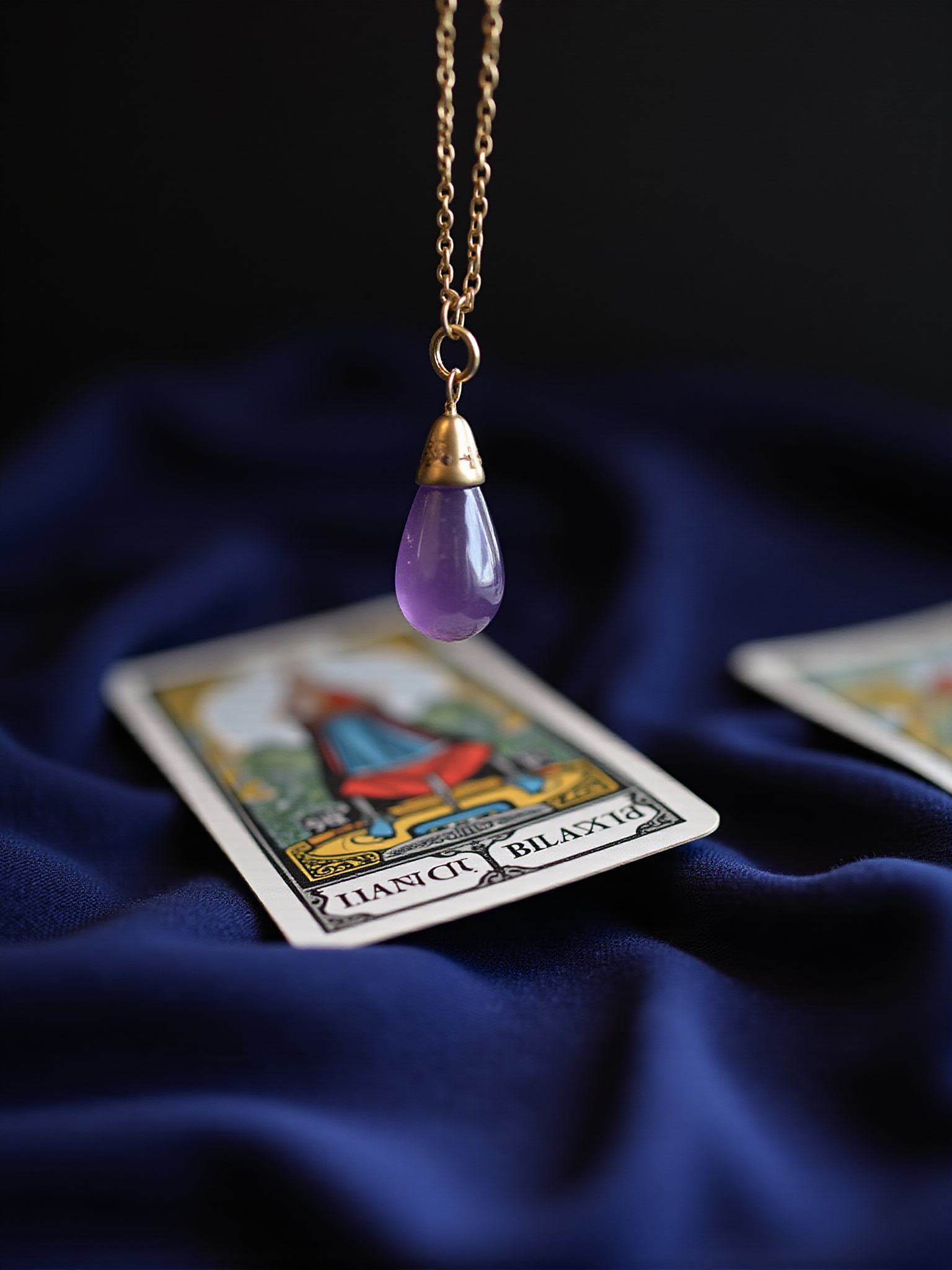 Le pendule divinatoire : Outil de radiesthésie, il me permet de valider des ressentis, d’apporter des réponses simples (oui/non), de détecter des déséquilibres énergétiques ou encore de guider certains choix. Je l’utilise également dans le cadre de conseils en lithothérapie.